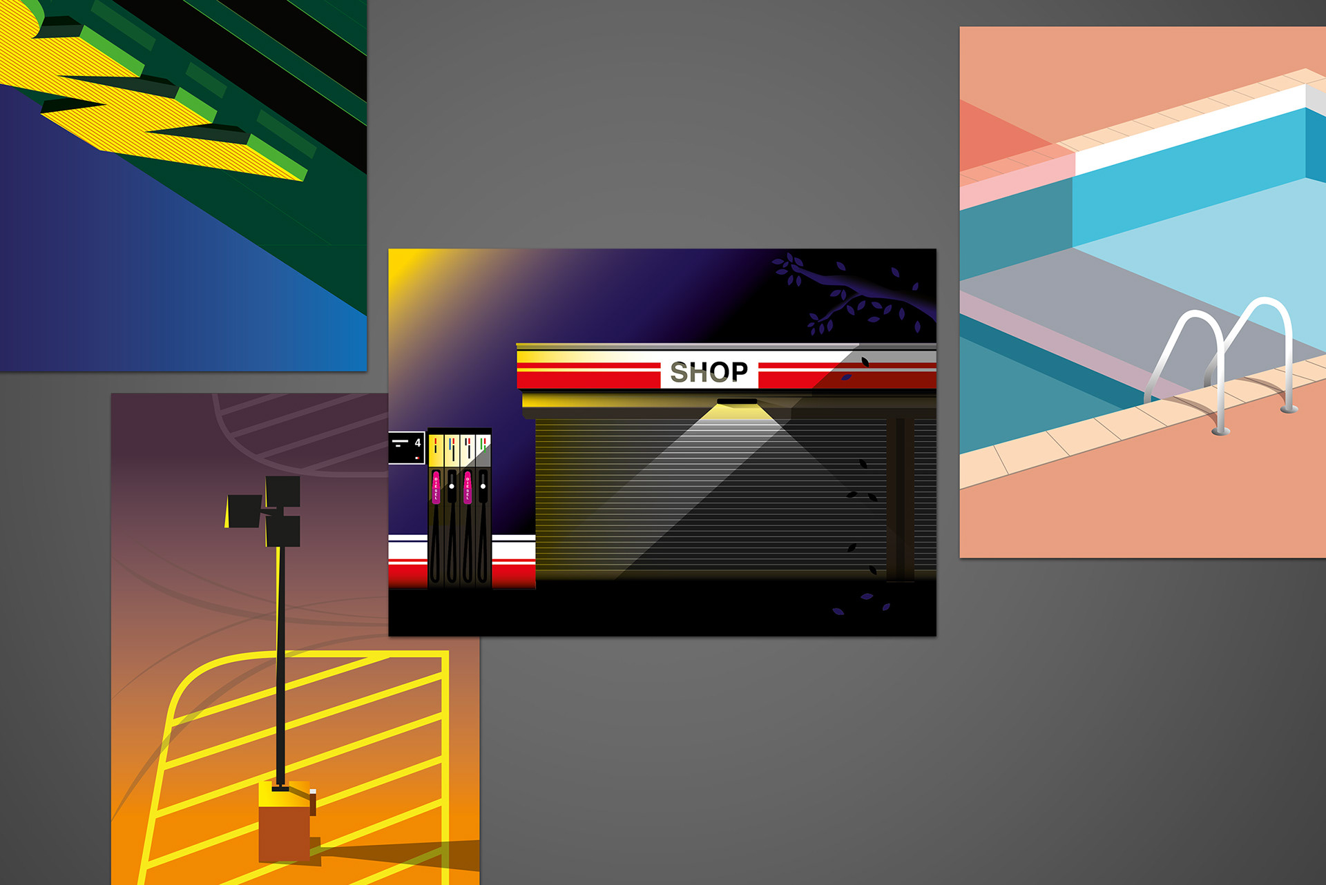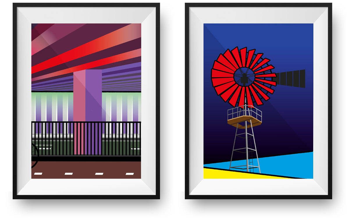 Iedere stad heeft bekende plekken en bouwwerken; de iconen van de stad. Vaak doen de kerken, torens en bruggen van eeuwen terug het goed. Iedereen kent ze en ze staan op ieder stadsbeeld. Maar naast deze klassiekers worden er nog genoeg nieuwe(re) landmarks gebouwd. Vaak minder mooi en buiten het stadscentrum, maar herkenbaar voor ieder inwoner en bezoeker van de stad. Deze ‘nieuwe iconen van de stad’ worden vertegenwoordigd in deze serie. Door ze grafisch weer te geven, zoveel mogelijk te ontdoen van overbodige elementen en omgeving, worden ze krachtiger in kleur en compositie. De juiste balans tussen het weghalen van details en de herkenbaarheid behouden.